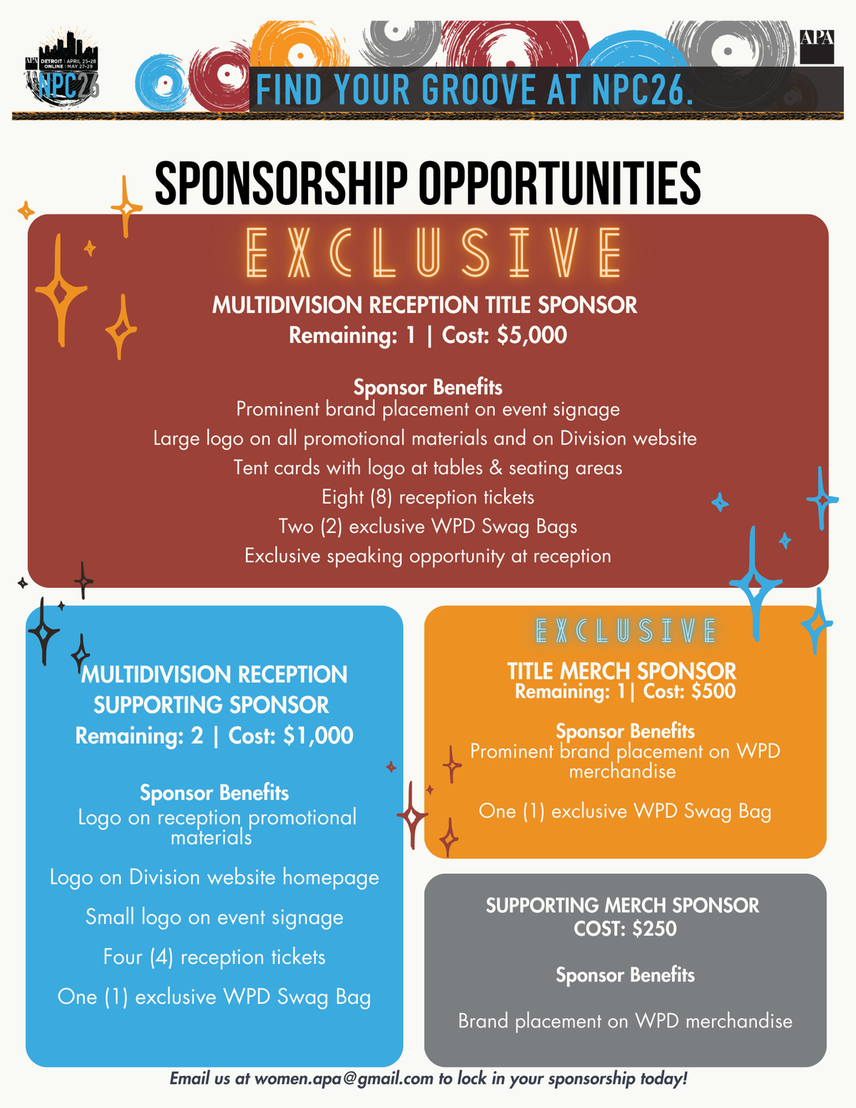 Did you miss our NPC26 Session Proposal Workshop and Speaker Match? Don't worry, we've got you covered. Join WPD's replay crew and check out a recording of the webinar! If you have ideas or questions, reach out to us at women.planning(at)gmail.com